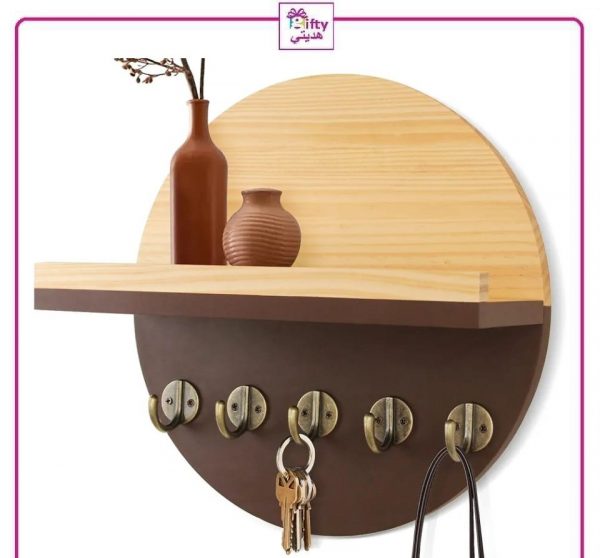 Key Holder for Wall with Shelf – Wood Mail Organizer and Rack with Hooks, Diameter 30cm